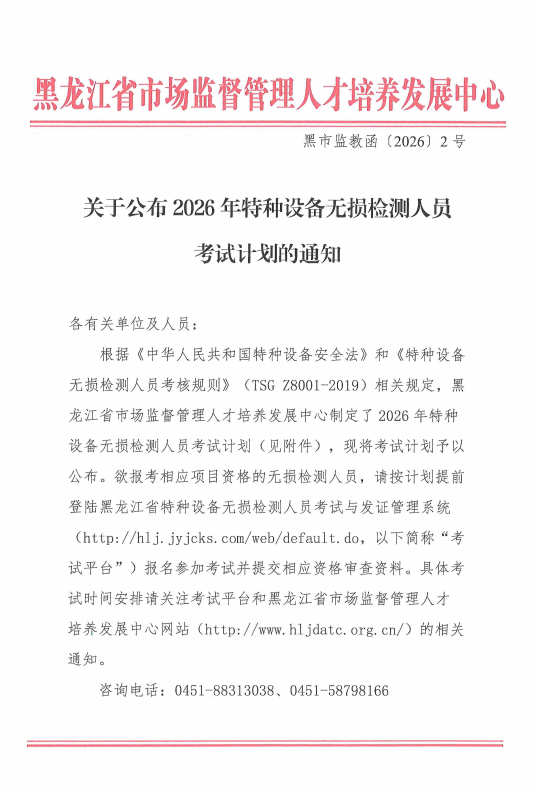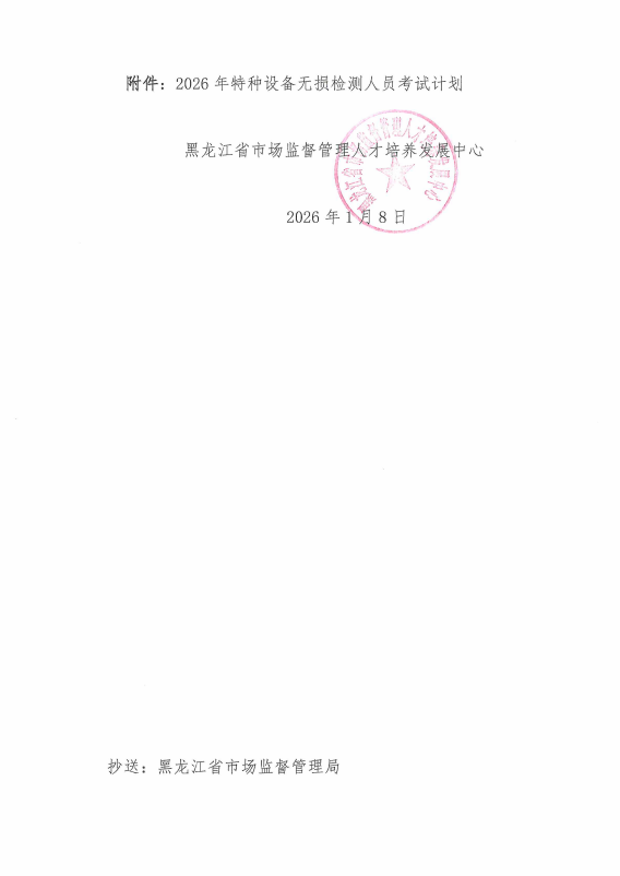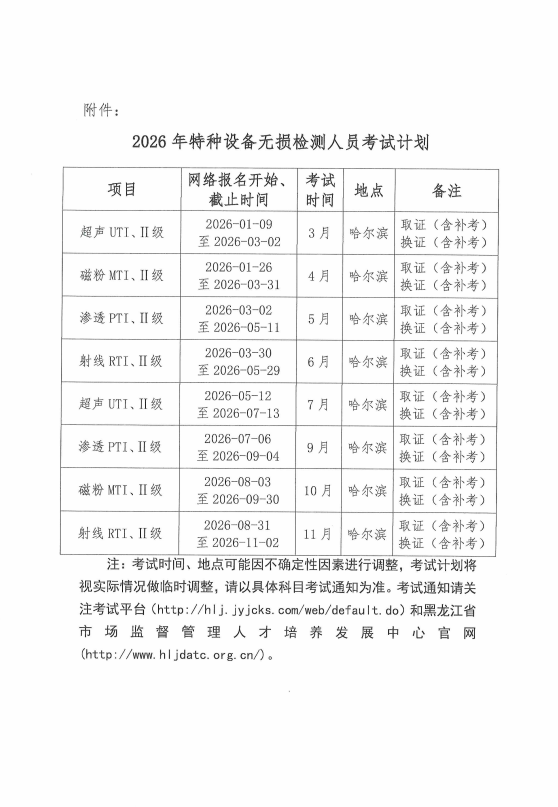 关于公布2026年特种设备无损检测人员考试计划的通知