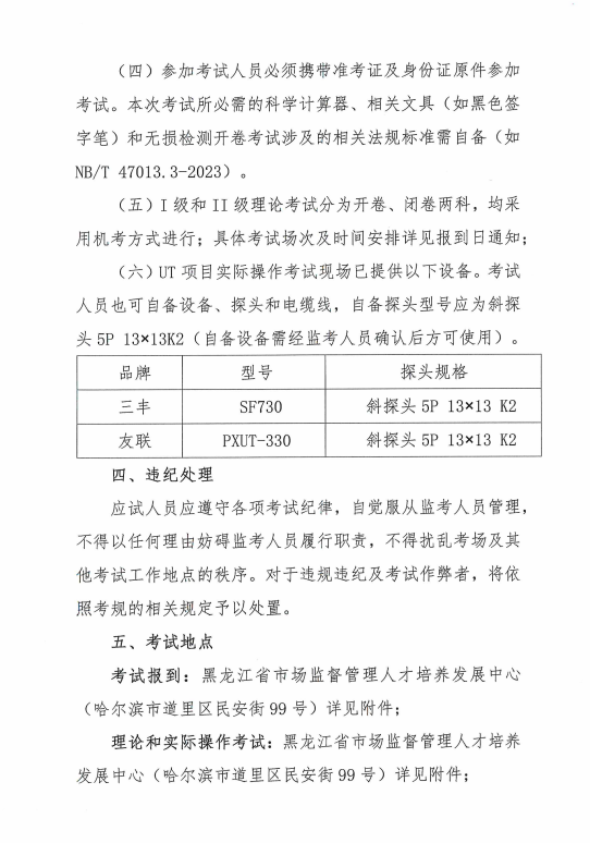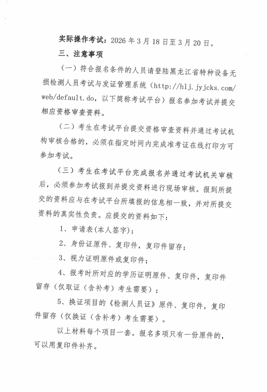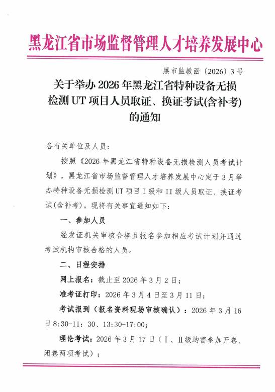 关于举办2026年黑龙江省特种设备无损检测UT项目人员取换证考试(含补考)的通知